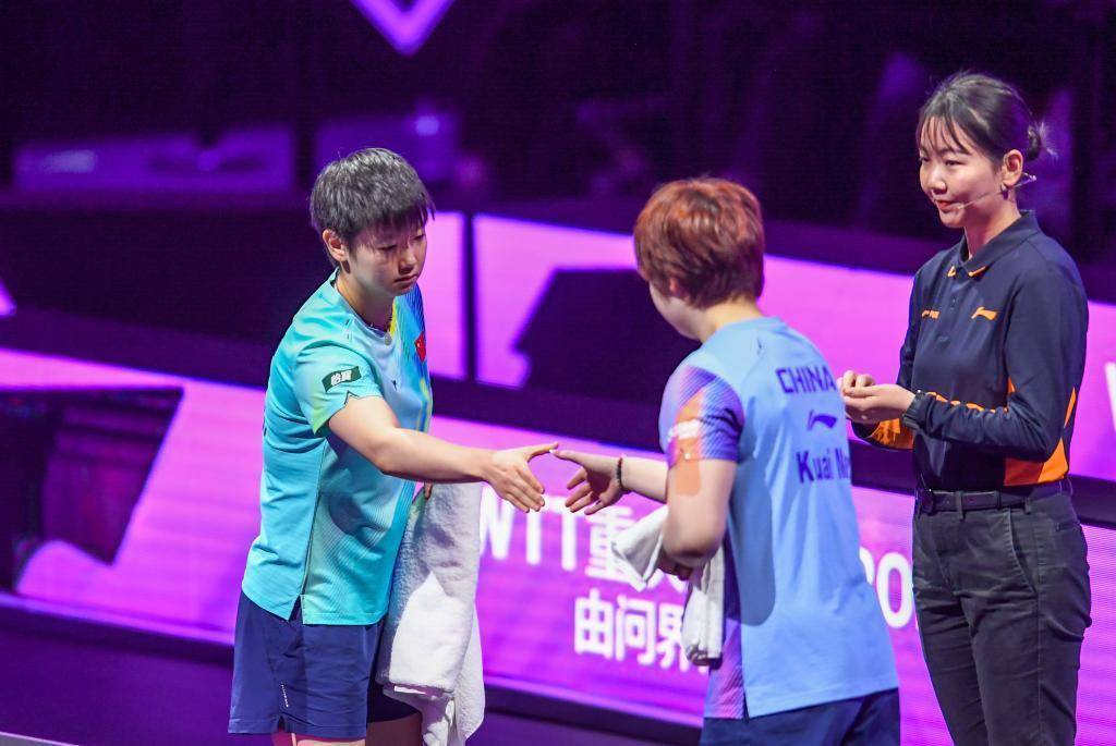 当六合午进行的女单四分之一决赛中,孙颖莎以2:4不敌队友蒯曼。首局,孙颖莎以11:6轻取敌手。第二局,蒯曼以11:7扳回一城。第三局,4:8过期的孙颖莎追至9平,两边缠斗至14平后,蒯曼以16:14拿下。第四局,蒯曼以11:7拿下。第五局,孙颖莎以11:9胜出,将大比分追至2:3。第六局,蒯曼以11:2得回终末告成。