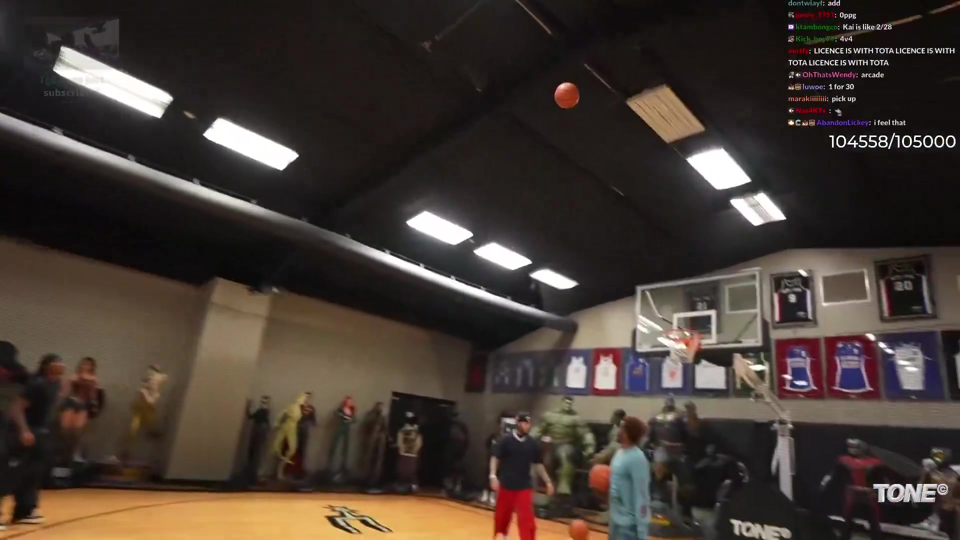 😳随布置便三分10中9!三球在网红主播Kai的球馆内大秀准度体育录像/图片
