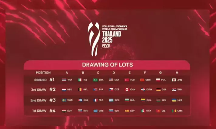 2025年女排世锦赛在泰国举行抽签庆典,抽签恶果出炉。中国、多米尼加、哥伦比亚、墨西哥同在F组。