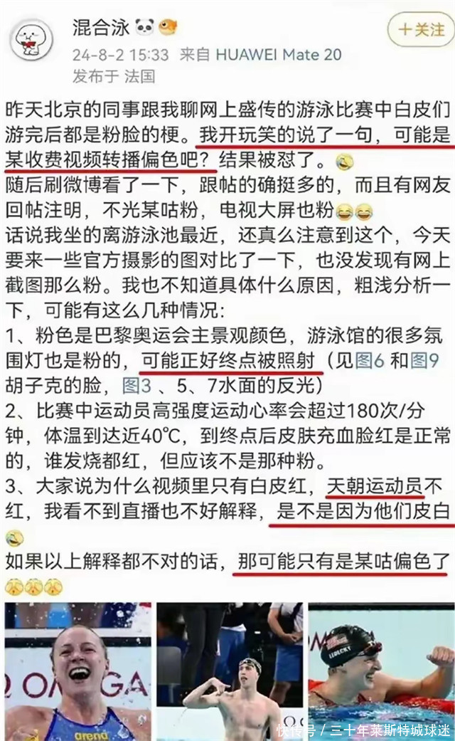 对于这位袁主任的故事,在网上也曾恶名昭著,此东说念主放着大好远景不赞理,偏专爱作念“恨国党”!巴黎奥运会时期,中国拍浮队在遭受西洋的各式糟蹋后屡屡受挫,错失了好多夺金点,直到潘展乐拿到金牌打脸好意思国东说念主后,袁主任接续证据阴阳怪气的功夫,称潘展乐是“东说念主类遗迹”。要是说袁主任真的服了那也无所谓,但当西洋拍浮队等闲出现紫薯脸疑似有问题时,他反倒当起科普素养,力挺他们是干净的,更是和国内网友唱反调。
