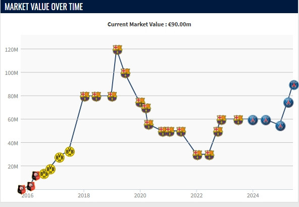 德转官方对此暗意,金球热点登贝莱在本期法甲身价更新中提高繁密,但如若登贝莱不错年青些,他的身价将会更高。